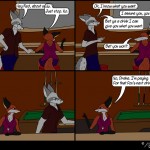 Fox walking in to the theater, ears and tail drooping, waiving halfheartedly at Essie.