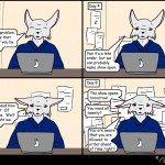 Fox sitting at his desk, eyes closed, ice pack on his forehead. (Maybe same panel from previous comic)