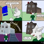 Same panel, fox opening one eye, making sure he’s alone.