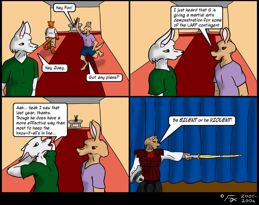 This one continues the 'con humor. In today's comic we get to see what G has been up to, and that apparently Joey is warming to the whole shindig. There's only a couple more of these so if you're not digging RPG humor, worry not it will be over soon.