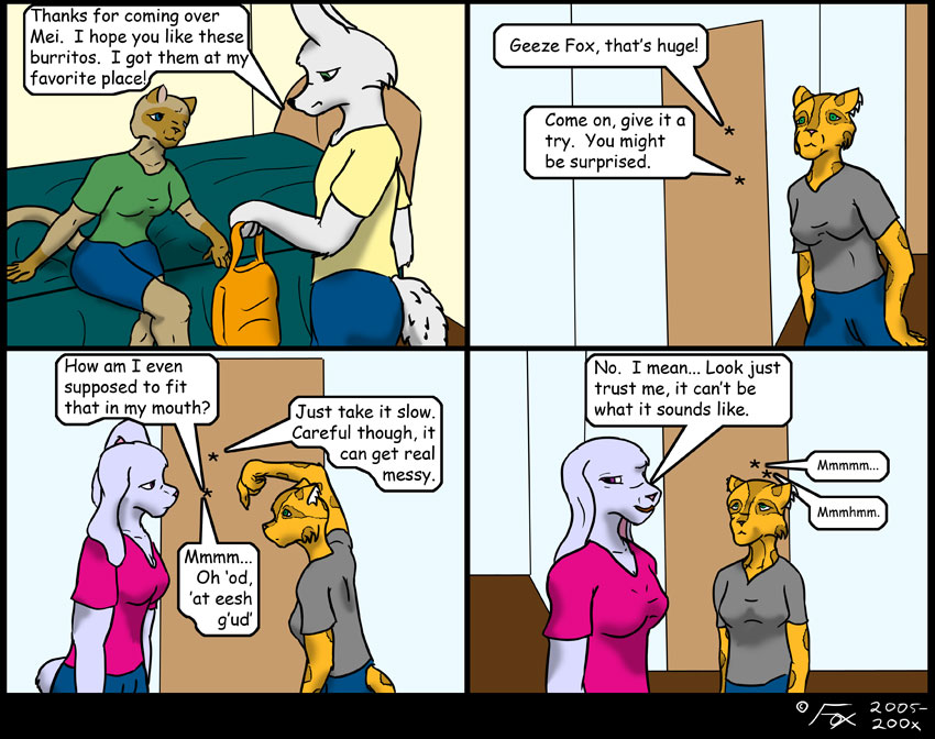 I like how this one turned out for two reasons. First, the expression on Mykies face in panel 3, and second, there are a couple of different layers of joke. Suffice to say, I got lucky on this one. ^.^