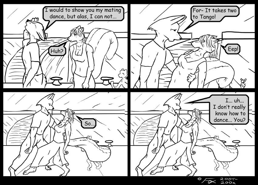 Todays comic returns to one of my favorite joke sets. I have to say, I really do love those bad pickup lines. :: grin :: I like how this one turned out, though I think I might have gone too far with the background... If you're wondering, she's supposed to be a skunk. I like her hair, came out cute, IMHO.