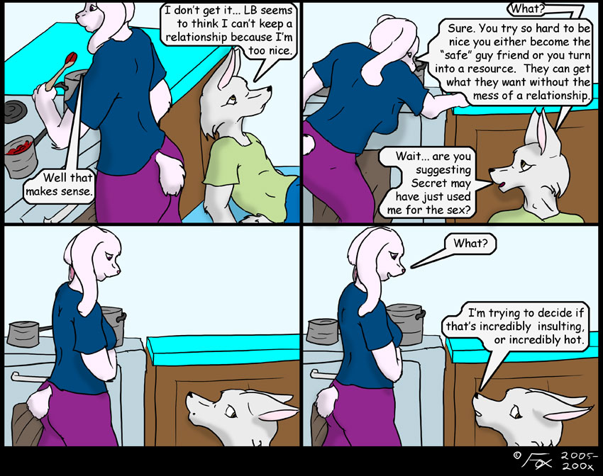 I'm always a little wary of these comics that run close to actual conversations, both because I'm not sure if the things that I find funny in them are only funny to those of us who were involved, (IE "you had to be there" jokes), and because I do change them. Who when and why all shift from comic reference to reference, so I wonder if I abandon the humor that existed in the moment by changing the players and impact... Or maybe I'm over-thinking the fuzzy animals I draw... Could be either...