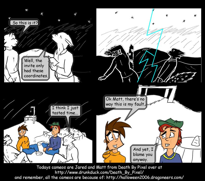 I actually thought this actually looks pretty good :: grin :: Todays comic continues the Halloween Caper fun. The cameo's in this comic come from one called Death by Pixel which is actually pretty darn funny. Go ahead and check it out!