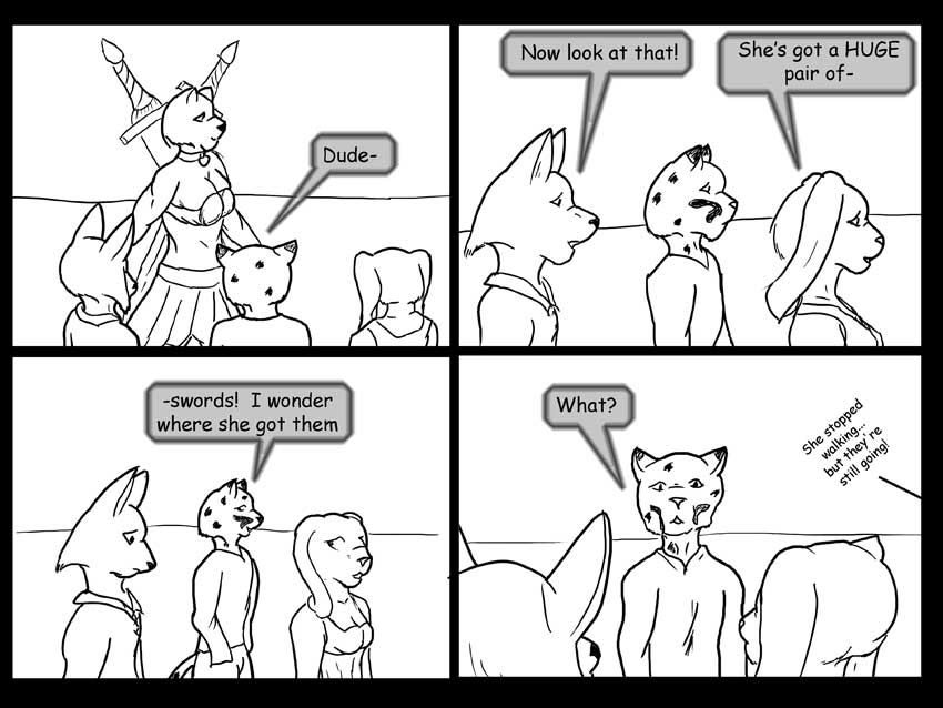 Todays comic continues this years abbreviated Faire set. Well that and continues to riff on Cid's apparent lack of interest or at the very least obliviousness to overt female attraction.