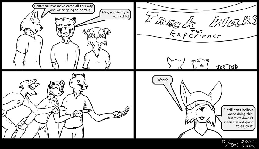 Well, I got pencils and stuff, but I decided to try what >figsauce suggested. Todays is all digital again. I think I'm gonna try this for a while, and reserve my traditional media for figure work and other sketches... :: shrugs :: Let me know if it seems to make a difference K? Todays comic is... well if you've been to 'Vegas and you're a geek, you know where we were. :: grin :: You know the've got a bar? We know... You'll see...