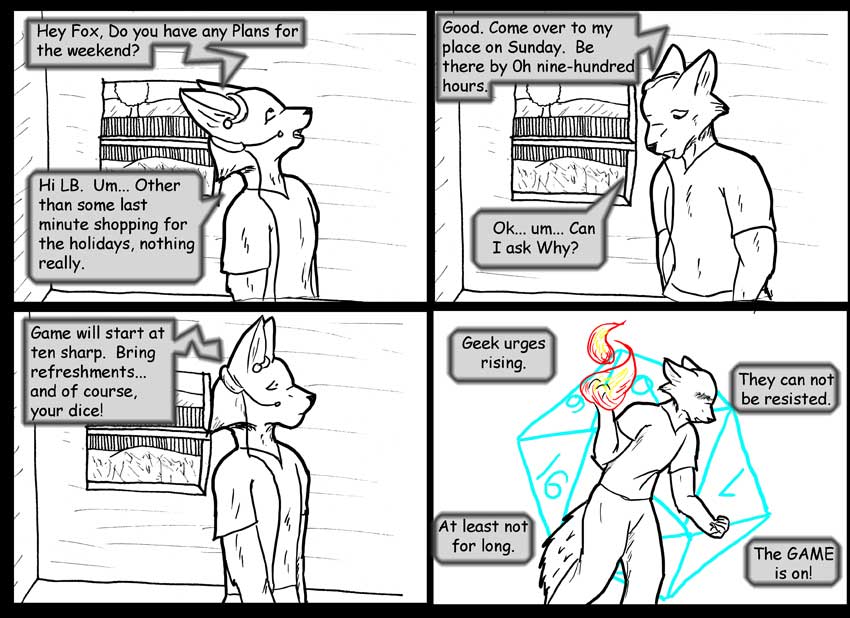 Hey all. So here it is, the first one in what might be a really big mistake! :: grin :: Hey Fox has updated with the first in a new miniseries to run parallel to the usual comics. I'm going to try a sunday comic, centered around "The Game" as role played by some of the comics usual characters.