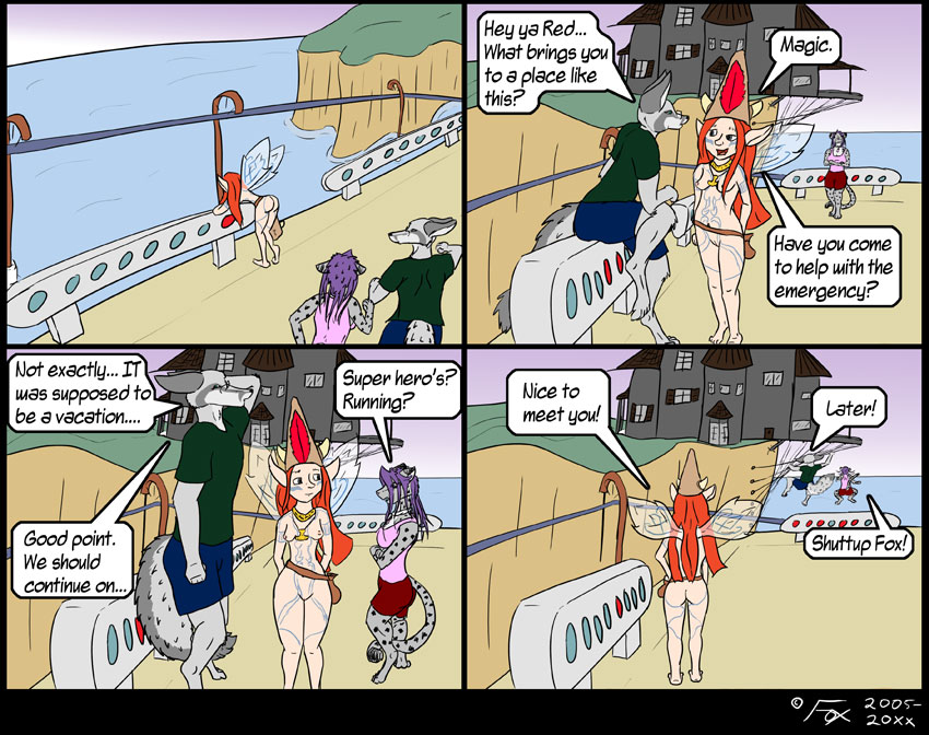This week's cameo is Abúi from Abúi's Travels! Her particular inclinations on costuming lean, lets say, towards Fox's taste. And she's a redhead. (It's a fox thing.) Yes, the Halloween Crossover Cameo Caper continues! Remember to check out the hub here and see what everybody else is doing. I've been digging through the archives of Rogues of Clwyd-Rhan and really enjoying it a lot. I'd suggest you check it out. (Although it's a little NSFW, as per the comic above.) As such though, I've been a bit nervous about this one. I want to make it (as close as I can get) to worthy of the cameo. That sounds like I'm down on the other comics in the crossover, but that's not the case. Really it's just that I've been having a lot of fun with this one in particular. ^.^ I've always rated this comic as MA, but I have't really taken advantage of it much. I don't want to come off as porny, or cheese-cake for the sake of hits, but I do like having the freedom to play around with a little more adult content... I'm not saying that I'm going to get into a bunch of sex scenes, just that it's on my mind. Also I'm kind of tired right now so this is getting rambly... I might edit this later. >.>