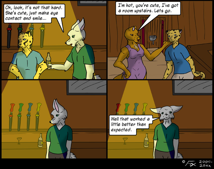 So i really like how this comic turned out. Not the art, not the look. I spent way too long on the backgrounds than I should have. Still, I love this timing. I know it’s super cliche, the whole beat-beat-paus-respond setup for a 4-panel is way overdone. Still, it’s overdone for a reason! It’s funny!